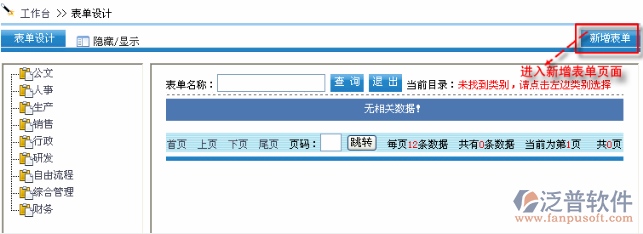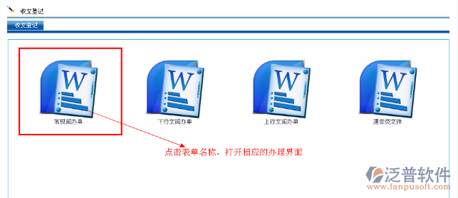 首先進(jìn)入到【公文管理】-【收文-登記】頁(yè)面,點(diǎn)擊【表單名稱】如圖: