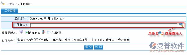 進(jìn)入委托頁(yè)面以后,選擇“委托人”然后點(diǎn)擊【提交】,工作將自動(dòng)委托給對(duì)應(yīng)的人辦理。