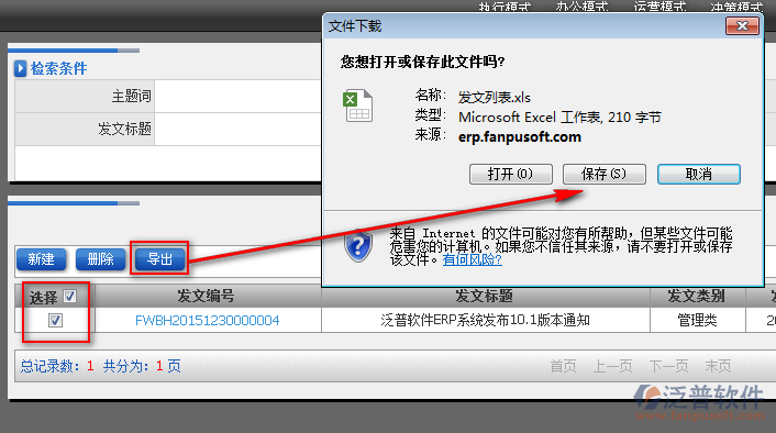 5、選中的發(fā)文信息,用戶可以直接導出進行查看。如圖: