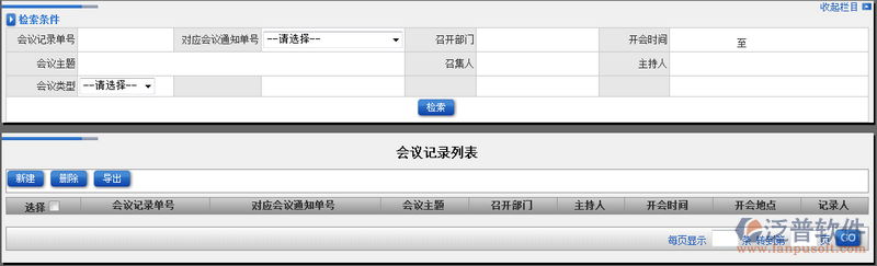 1、點擊【會議記錄列表】進入列表顯示頁面,如圖:
