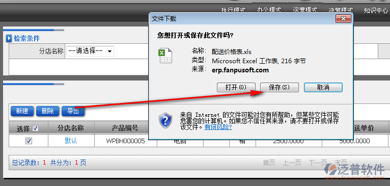 5、點擊上圖中的導出,即可實現(xiàn)配送價格【導出】功能。如圖: