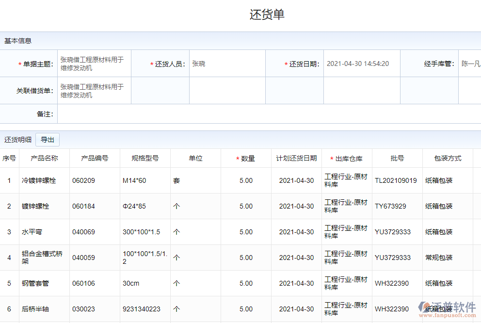 1、系統(tǒng)通過標(biāo)準(zhǔn)化的登記管理,清晰記錄借貨人以及經(jīng)手庫管,避免后期追責(zé)找不到人。