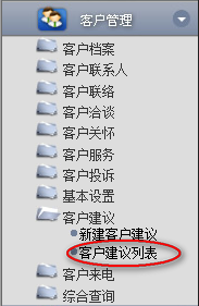 1.點(diǎn)擊辦公模式→客戶管理→客戶建議→客戶建議列表,進(jìn)入“客戶建議列表”窗口: