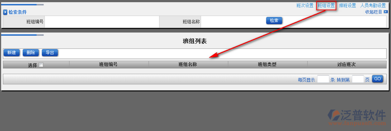 1、班組設(shè)置主要針對(duì)公司有早、中、晚三班工作時(shí)間的客戶提供,設(shè)置后方便客戶統(tǒng)計(jì)不同時(shí)間段上班的員工考勤情況。點(diǎn)擊系統(tǒng)右上角的【班組設(shè)置】進(jìn)入班組界面。如圖: