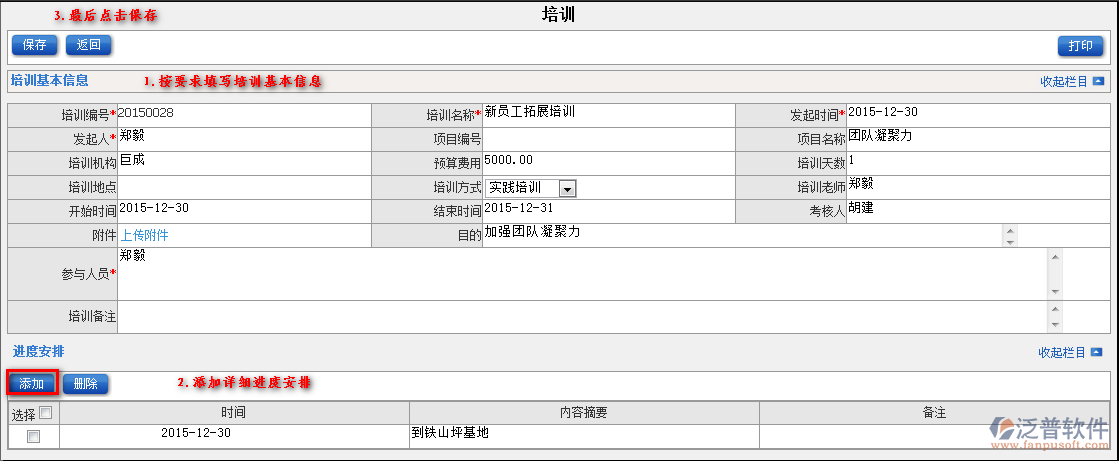 2.填寫(xiě)基本信息,添加詳細(xì)進(jìn)度計(jì)劃,最后點(diǎn)擊保存操作完成