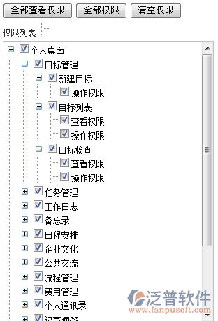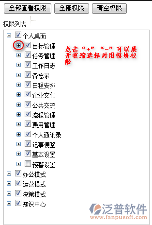 (4)【個人桌面】【辦公模式】【運(yùn)營模式】【決策模式】【知識中心】是五大核心功能模塊,如果選中【個人桌面】那么【個人桌面】下面所有功能權(quán)限一并賦予