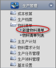 1.點(diǎn)擊辦公模式→生產(chǎn)管理→物料清單→新建物料清單,進(jìn)入“新建物料清單”窗口: