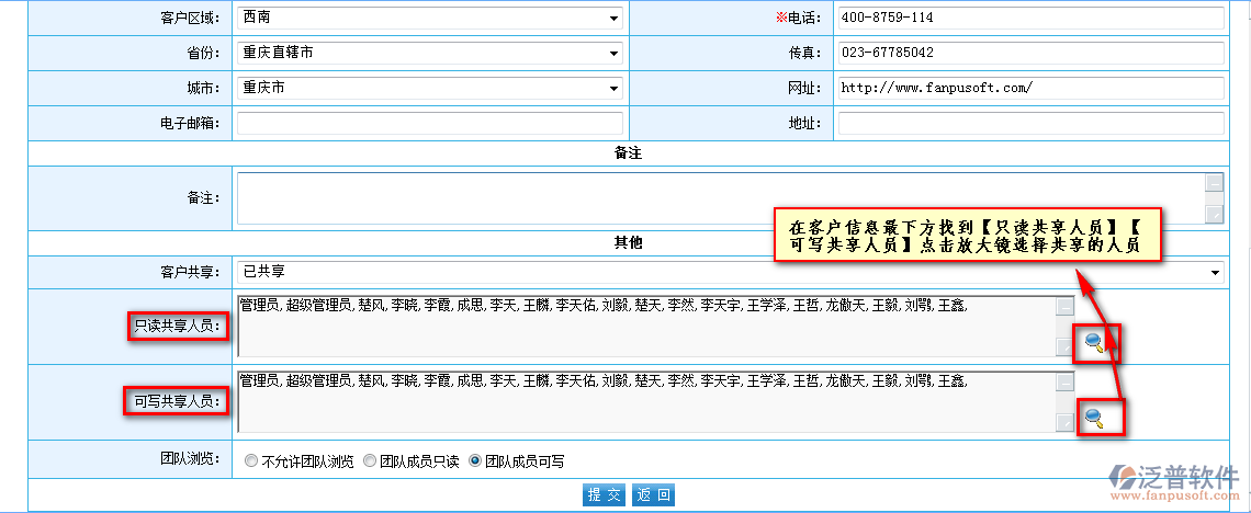 2、如果新建了客戶當(dāng)時沒有共享,后期可以通過修改共享人員來實(shí)現(xiàn)(操作上是類似的,只是進(jìn)入方法不一樣)