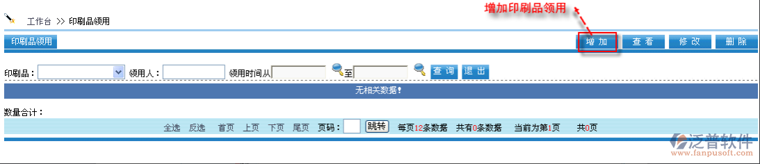 首先進(jìn)入到【銷售系統(tǒng)】—【市場管理】—【印刷品管理】—【印刷品領(lǐng)用登記】,如圖: