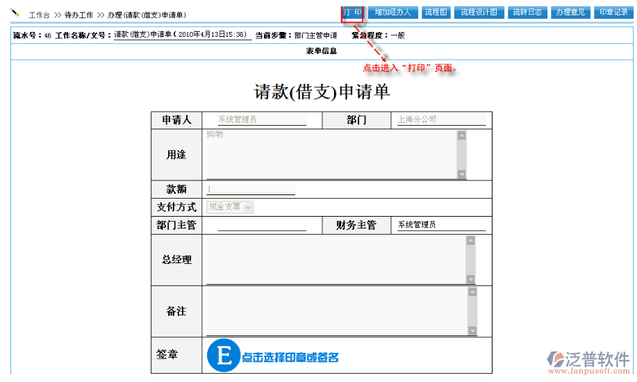 在辦公的時(shí)候,如果想將表單明細(xì)以及辦理的過程,日志等內(nèi)容打印保存,我們可以在表單辦理頁(yè)面的右上角點(diǎn)擊【