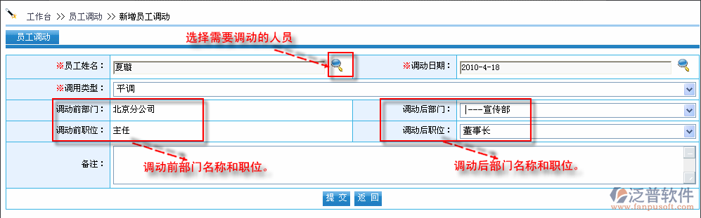 點擊【增加】進入到調(diào)動信息錄入頁面,如圖: