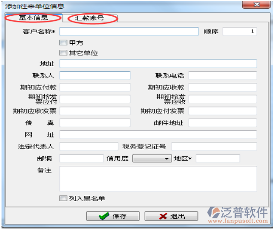 在左側(cè)選好分類,然后點新增新建往來單位,填好往來信息即可。(也可以對建好的往來單位進行修改,刪除操作,其中帶*的為必填項)