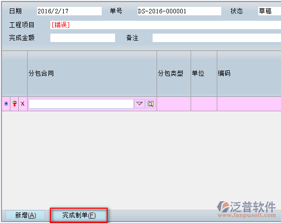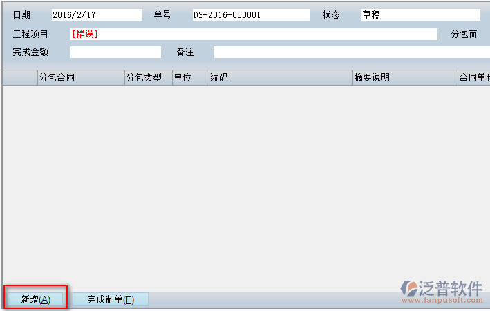 2、通過點擊主界面中的【新增】添加新的分包計量信息。如圖: