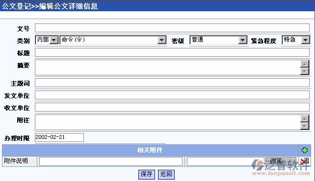 輸入公文相關(guān)屬性信息