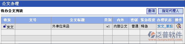 此頁(yè)面首先顯示當(dāng)前操作員登記或擬制過(guò)的公文信息及其當(dāng)前辦理狀態(tài)。
