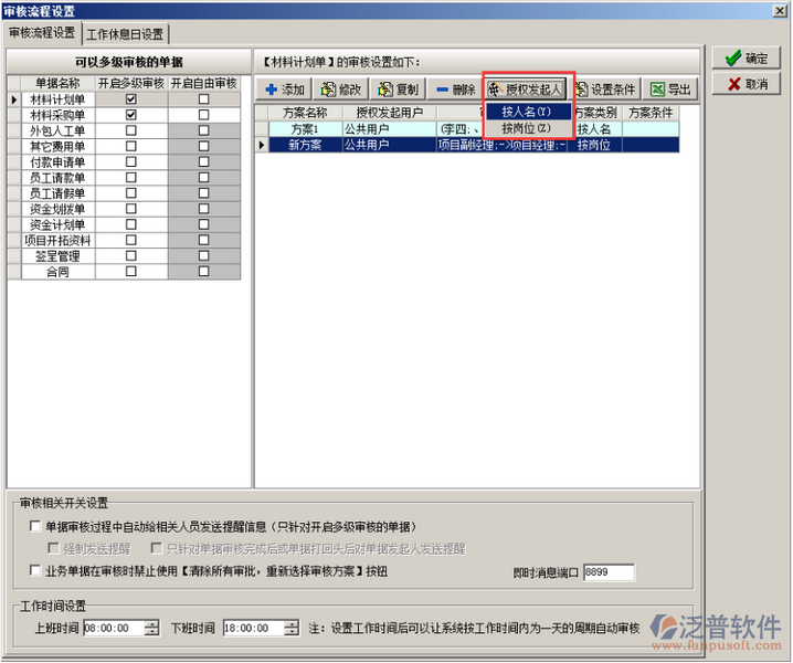 程設(shè)置”彈出“審核流程設(shè)置對(duì)話框”,如圖: