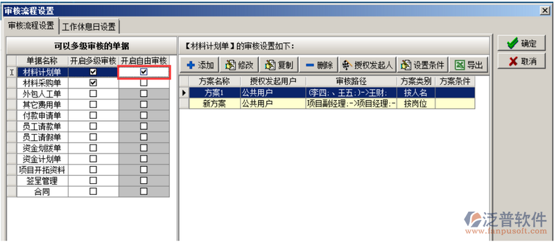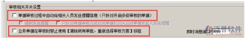 如果單據(jù)開(kāi)啟自由審核則在單據(jù)對(duì)應(yīng)的“自由審核”的復(fù)選框內(nèi)打鉤,如圖: