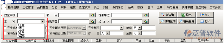 外包人工明細查詢的時候也可按照工種查:
