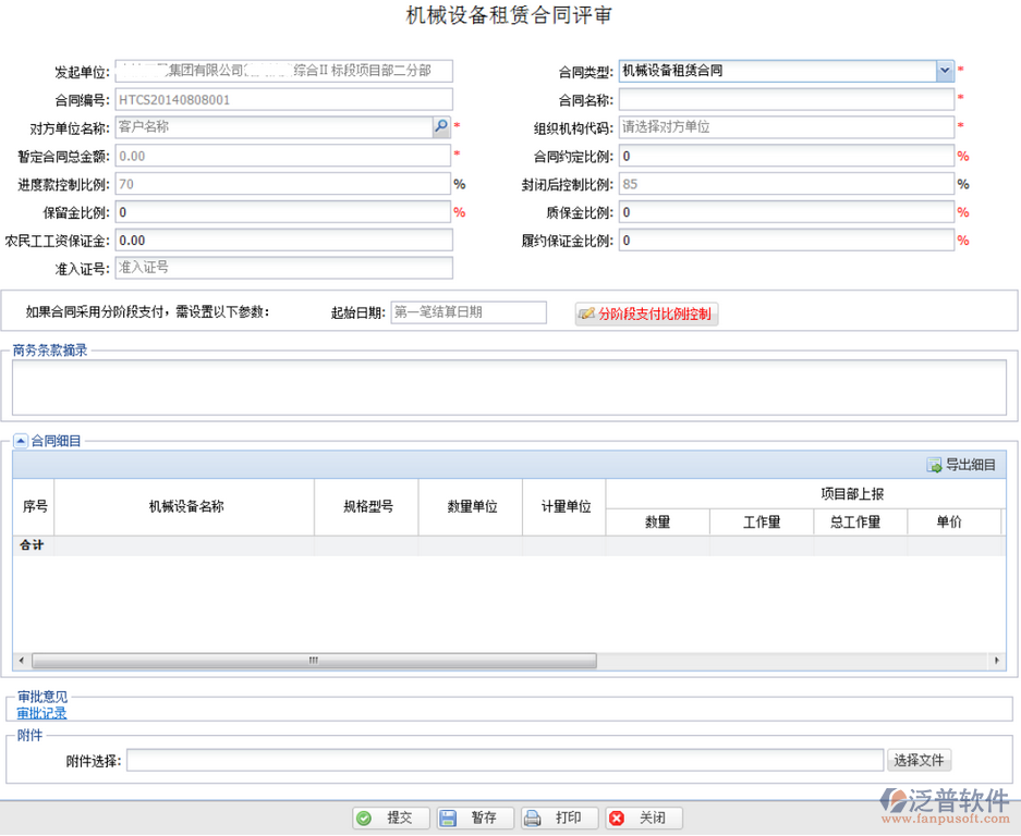 當(dāng)前位置:工程項(xiàng)目OA系統(tǒng) > 建筑施工OA系統(tǒng) > 功能介紹 > 機(jī)械管理 > 租賃合同