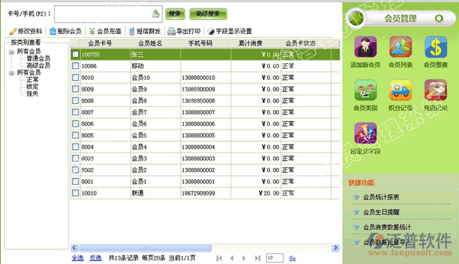 泛普會員管理系統(tǒng)免費版功能特點: