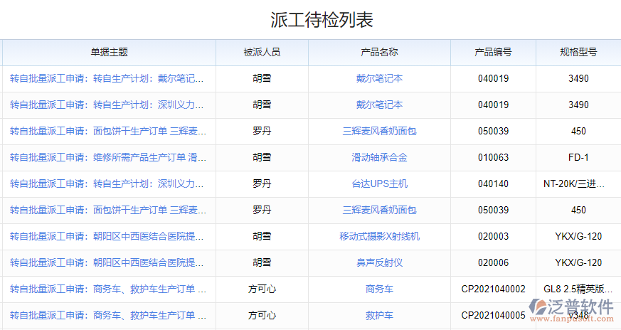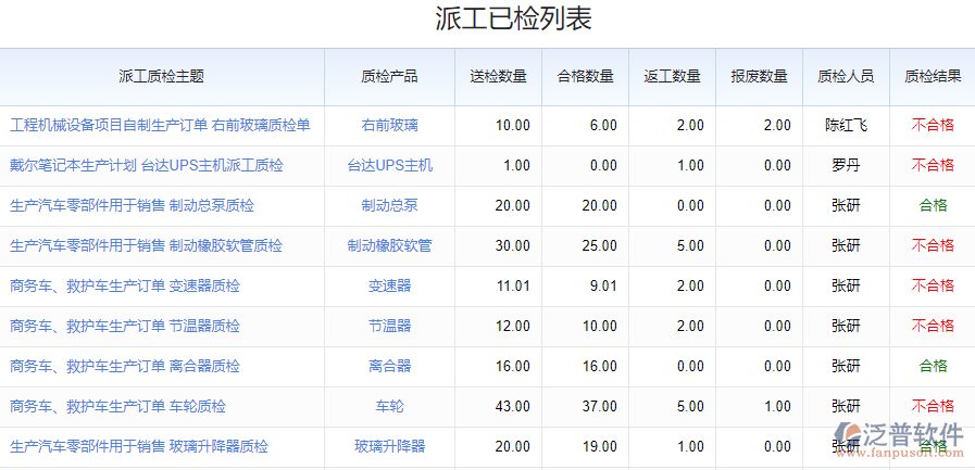 2、 通過系統(tǒng)的派工質(zhì)檢列表可以填寫具體的質(zhì)檢情況,包括派工人員、派工產(chǎn)品以及所需的物料明細,讓領(lǐng)導清楚的了解派工情況。