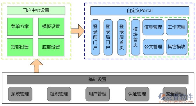 4、門戶性:集團(tuán)OA軟件采用門戶的概念,讓集團(tuán)總部、子公司、部門具有相對獨立的辦公窗口,實現(xiàn)層級化的管理;