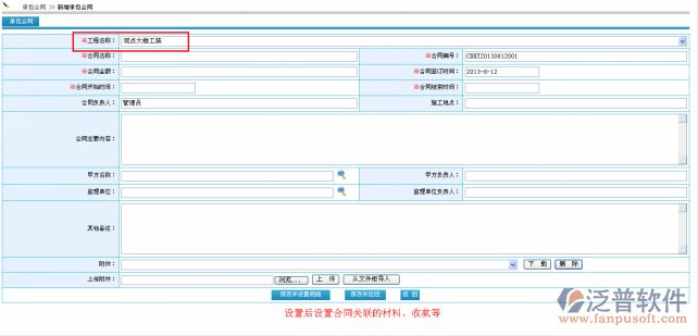 首先進(jìn)入到【項(xiàng)目管理】—【工程管理】—【承包合同】,如圖: