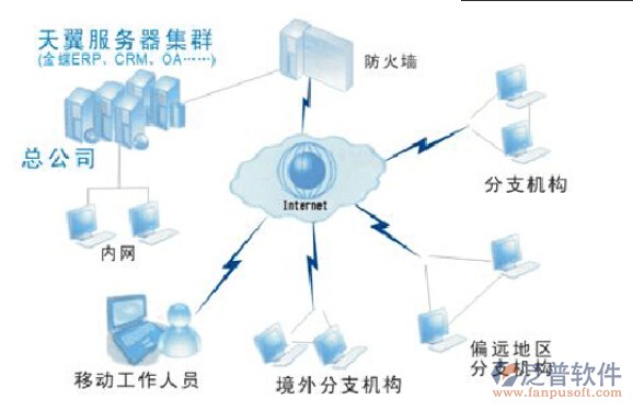 Windows DNA(Windows Distributed interNet Application Architecture)技術(shù)架構(gòu)的分步式應(yīng)用系統(tǒng),是業(yè)界第一個真正推出三層結(jié)構(gòu)的ERP產(chǎn)品。經(jīng)過7年的潛心研究和大量的客戶驗證,現(xiàn)在三層結(jié)構(gòu)技術(shù)在金蝶金蝶ERP系統(tǒng)中的應(yīng)用已經(jīng)非常成熟和穩(wěn)定。金蝶KIS系列產(chǎn)品以“讓管理更簡單”為核心設(shè)計理念,讓企業(yè)的工作更簡單,響應(yīng)更快速,管理效率更上一層樓!解決方案:在瑞友天翼應(yīng)用接入系統(tǒng)平臺上集中部署金蝶ERP、KIS軟件,通過RAP協(xié)議分離應(yīng)用程序邏輯運算和邏輯顯示層,實現(xiàn)企業(yè)快速、低成本、低帶寬部署金蝶產(chǎn)品,解決企業(yè)應(yīng)用中的信息安全、信息管理成本高居不下、軟硬件改造等等問題。網(wǎng)絡(luò)示意圖: 應(yīng)用價值:1)超低帶寬應(yīng)用3KB/s的超低帶寬實現(xiàn)金蝶ERP的集中應(yīng)用,保證低帶寬下的流暢運行。2)集中部署