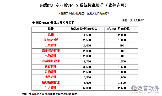 金蝶 KIS 商貿(mào)版 V2.0 系統(tǒng)標(biāo)準(zhǔn)報(bào)價(軟件許可)