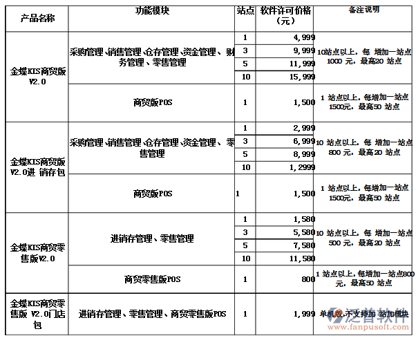 蝶 KIS 商貿(mào)零售版 V2.0、金蝶 KIS 商貿(mào)零售版 V2.0 門店包 二、標(biāo)準(zhǔn)報(bào)價(軟件許可)
