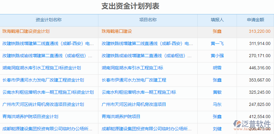 三、泛普軟件路橋工程管理系統(tǒng)的項(xiàng)目資金計(jì)劃管理和列表