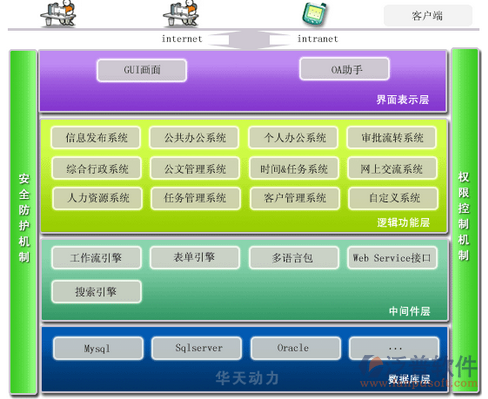 華天動力OA采用J2EE+SOA+MVC+WebService技術(shù),以框架+組件的體系構(gòu)成一個“魔方架構(gòu)”,為用戶提供了完全開放的應(yīng)用平臺: