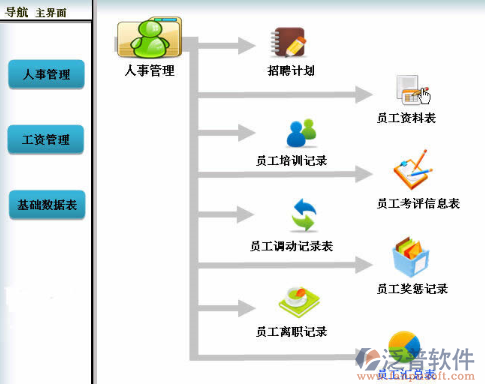 也就是人力資源管理軟件,就是把日常的工作E化。比如人力資源管理制度,作業(yè)流程,如:員工管理辦法,績效考核制度,薪資制度,職位說明書,人事信息等。