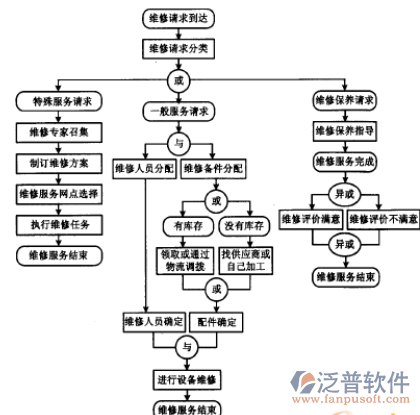 服務(wù)管理:報修登記 維修報價 維修派工 完工檢測 服務(wù)結(jié)算 維修查詢 安裝派工 安裝施工 完工驗收 業(yè)務(wù)結(jié)算 安裝查詢 定期保養(yǎng)維護 工單狀態(tài)查詢