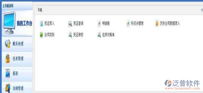 功能模塊: 財務(wù)處理、往來管理、出納管理、報表統(tǒng)計