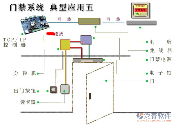 2、布線稍麻煩:控制器需通過RS485或TCPIP與管理電腦相連,泛普軟件指紋讀頭需要通過另外一條TCPIP線路與管理電腦連接,泛普軟件指紋讀頭還需要通過一條線與控制器連接。