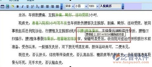 醫(yī)療OA系統(tǒng)電子病歷界面: